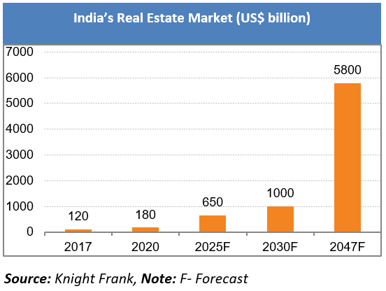 *Private market investor, Blackstone, which has significantly invested in the Indian real estate sector worth Rs. 3.8 lakh crore (US$ 50 billion), is seeking to invest an additional Rs. 1.7 lakh crore (US$ 22 billion) by 2030.