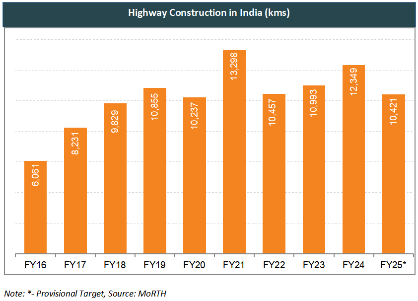 *In September 2025, the government announced a massive Rs. 11 lakh crore (US$ 125 billion) initiative to build 17,000 km of high-speed, access-controlled expressways by 2033. This plan aims to expand India’s high-speed road network fivefold, boost logistics efficiency, and enhance economic connectivity. About 40% of these expressways are already under construction, with most expected to be completed by 2030.